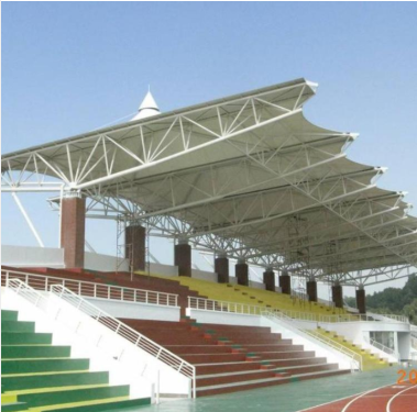 透光性好,视野开阔选用 PTFE、PVDF 等高品质膜材,具备良好的漫反射透光效果,在遮挡烈日暴雨的同时,可让柔和自然光均匀洒入看台区域,避免传统看台的封闭压抑感。膜结构看台的大跨度设计无遮挡立柱,保障观众观看赛事或活动时视野通透,提升观赛体验。