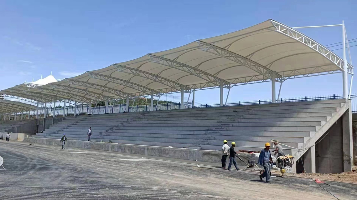 山东飞凯膜结构工程有限公司坚守品质底线,所有工程全部采用高品质膜材,部分项目还会根据需求选用进口膜材,核心的膜材与钢结构都选用行业优质材料,搭配标准化的生产工艺与严格的质量检测流程,每一件产品都符合安全与耐用标准。从性能上来说,飞凯生产的膜结构看台本身就有着突出的优势:大跨度设计不需要中间支撑,能够创造开阔无遮挡的观看视野;膜材自带自洁涂层,灰尘不易附着,雨水就能自然冲洗清洁,日常维护成本很低;10%-20%的透光率可以引入柔和自然光,白天不需要额外照明,还能阻挡紫外线,提升观看体验。